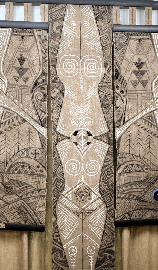 Від воєнної мадонни погляд природно переходить до трипільської жінки – архетипу при витоках нашої культури. У цьому ритмі – відлуння Трипілля. Не буквально, а як внутрішній код: спіраль, знак, орнамент насичені пам’яттю. Галина Дигас не цитує минуле, вона перетворює традицію на сучасну мову, де кожен елемент – не стилізація, а продовження. Її роботи – жива тканина спадкоємності, у якій українська земля говорить через форму, колір, ритм. Мисткиня має дар трансформації – переносити побачене в різні форми: гобелени, традиційний живопис. Кожна техніка говорить про свободу, гідність, світло.