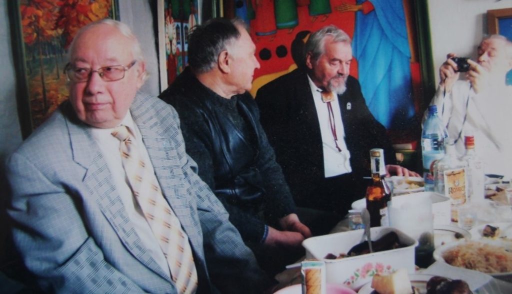 В майстерні Івана Новобранця. Зліва направо: Віталій Ханко, Василь Голуб, Віктор Фурман, Григорій Титаренко