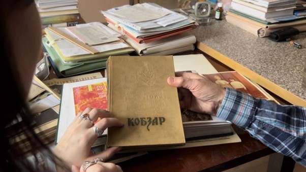 На столі – книга. Бере її обережно, обіруч, ніби вона може розсипатися. Пальці трохи тремтять. Розгортає – а вона озивається тихим сухим шерехом. Шевченків «Кобзар». Єдине, що залишилося від старої хати, чий попіл давно розвіяли вітри.