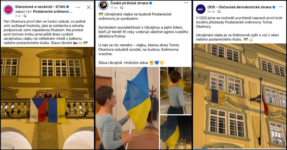 Томіо Окамура, лідер ультраправої антиєвропейської партії «Свобода і пряма демократія» (SPD) та новообраний спікер Палати депутатів, нижньої палати парламенту Чехії, розпорядився зняти з парламентської будівлі український прапор, який від початку повномасштабного вторгнення росії у 2022 році висів тут як символ підтримки України.
