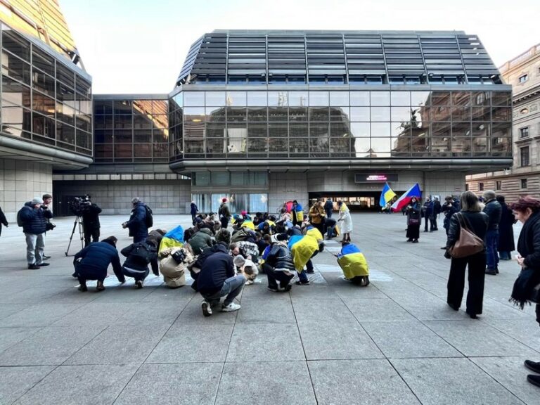 Чеська столиця вкотре відгукнулася на біль українського Маріуполя. Площа Вацлава Гавела зібрала перед Національним театром небайдужих на акцію до третіх роковин варварського авіаудару російської вояччини по Маріупольському драмтеатру – злочину, який обірвав життя сотень мирних жителів.