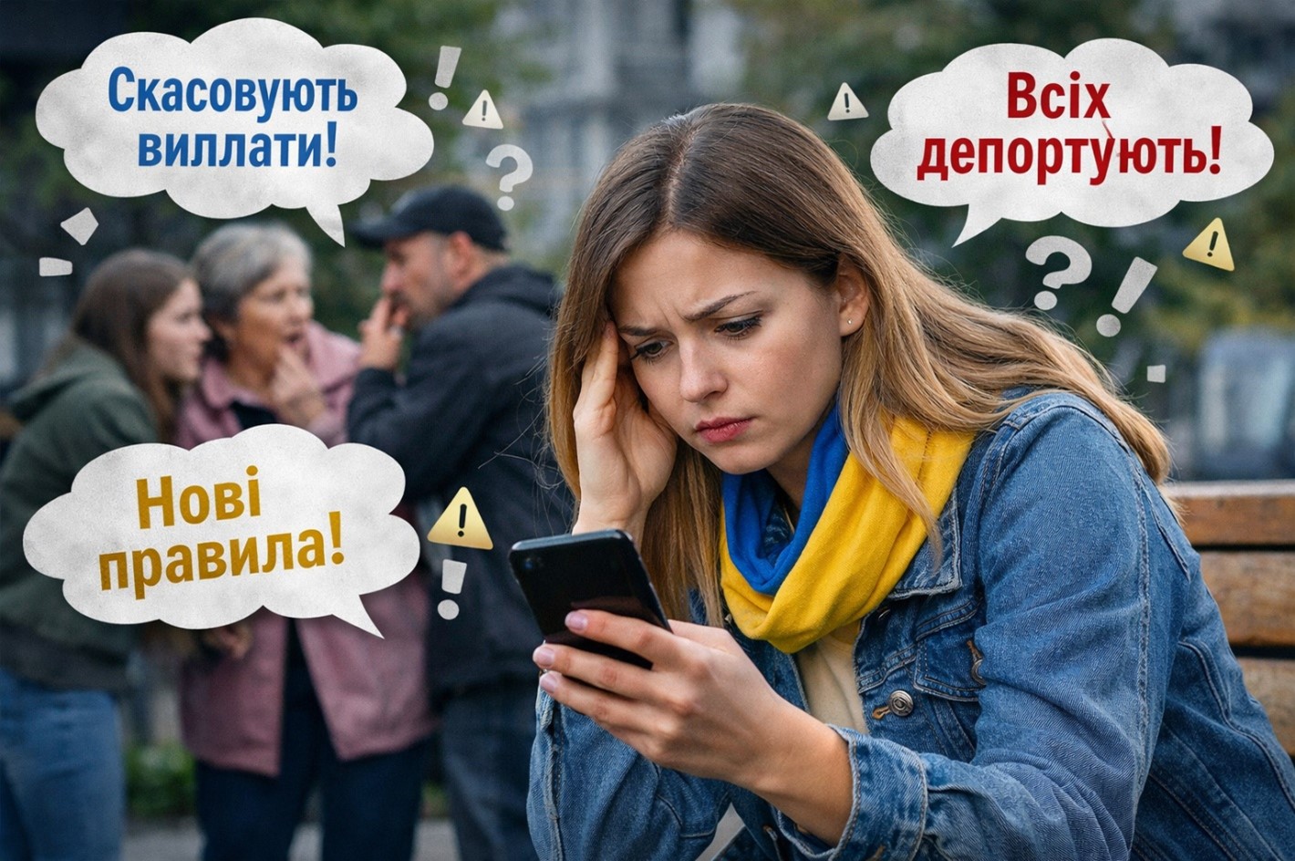 Тут, у місцевих чатах українців регулярно з’являються тривожні повідомлення про нібито скасування виплат, про масові депортації, нові правила, які не сповістили офіційні органи. Вони миттю «вірусяться», викликаючи паніку. Особливо в месенджерах, де інформацію не перевіряючи перепощують у групах чи серед знайомих.