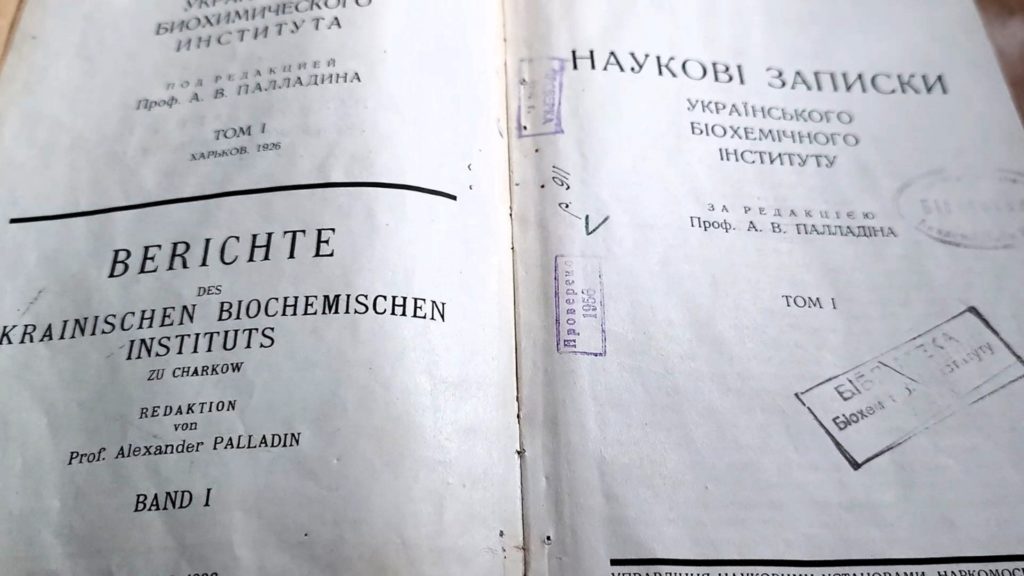 – Тоді, – пояснює, – наш інститут належав до Міністерства освіти, а згодом перейшов до Всеукраїнської академії наук. У цьому першому томі наукових записок містяться звіти про досліди, проведені в Українському біохемічному інституті упродовж 1925–1926 років. Це – підсумок першого року існування нашого наукового закладу.