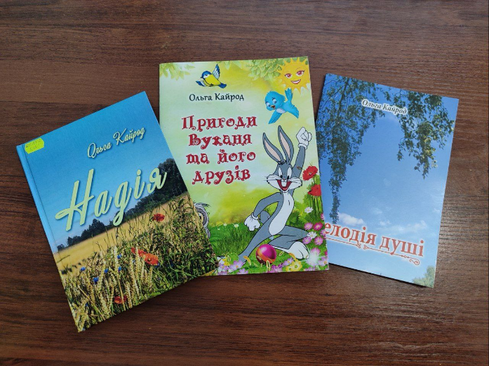 На початках публікувалася у місцевій газеті. Нині в її доробку п’ять поетичних збірок – для дорослих і дітей. Пані Ольга стверджує: це не для слави, а для того, щоб залишити спадок краси та добра. Мріє, щоб і через двадцять, тридцять років, її книжки, потрапивши до читачів, робили їх щирішими, людянішими. Бо саме цього бракує сучасному світові. Своїм поетичним псевдонімом «Ольга Кайрод» вона обрала прізвище батька. «Він не мав синів, але я продовжила життя його прізвищу, бо воно дороге й близьке моєму серцю».