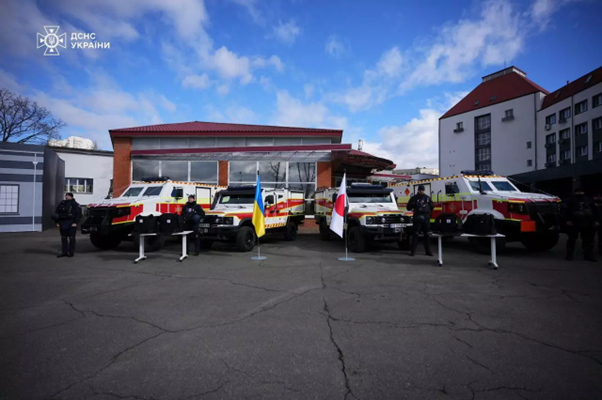 Парк броньованих піротехнічних машин, мікроавтобусів, сто комплектів захисного спорядження, сконструйованого спеціально для жінок, отримала Державна служба України з надзвичайних ситуацій як дарунок Японії.